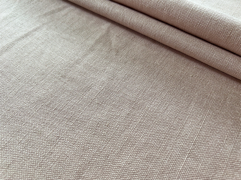 ベルギーリベコ社の限定生地Naturals Q364 Shell / ナチュラルズ Q364 シェルは、その名の通り、貝殻のような優し気なスモークピンクの厚地リネン100%生地です。カーテンとソファの両方に適した生地質で、カーテンに仕立てる場合はそれほど透け感はなく、密な織りの滑らかな生地質と、落ち感のあるドレープがとても素敵な生地です。厚みがありながら柔らかな風合いがドレープに高級感を与え、シックな空間を作ります。ソファの張地にした場合は生地の滑らかさが肌触りの良さに変わり、大人っぽくて深い存在感を与えてくれます。