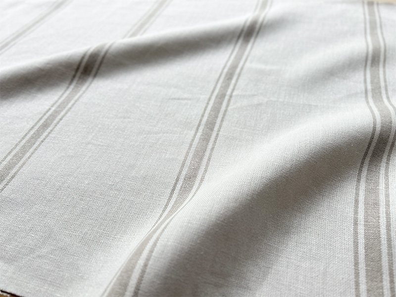 リトアニア製の中厚地リネンストライプLina 50 / リナ50は中厚地の中でも軽やかな質感のリネン生地。平織りで生地の軽さが外からの明りを取り入れ、幾重にも連なった細いストライプにうるささを感じません。光に透けた時に感じる爽やかさはこの厚みの生地だからこそ。カジュアルで涼々しい窓辺を作りたい方へお勧めです。