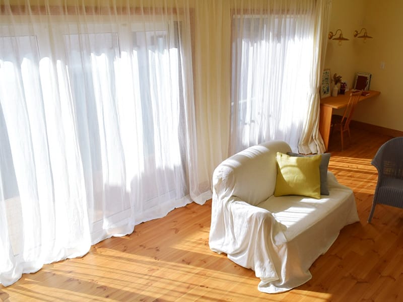 晴れの日と雨の日のカーテン丈が変わるのは、リネンが呼吸をしている証です。