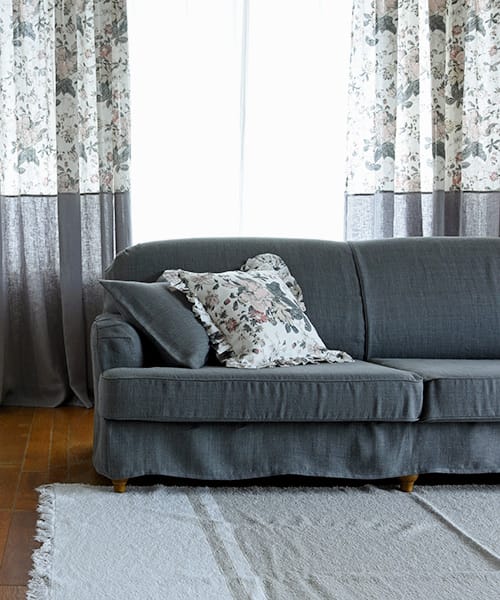 スモールアイテムやカーテンを変えることで、シックな風合いからガーリーな空間へ変身します。合わせるアイテムによってこんなにも変えてくれるファブリックマジック。合わせ方のコツをつかんで、お部屋のコーディネートにご活用ください。