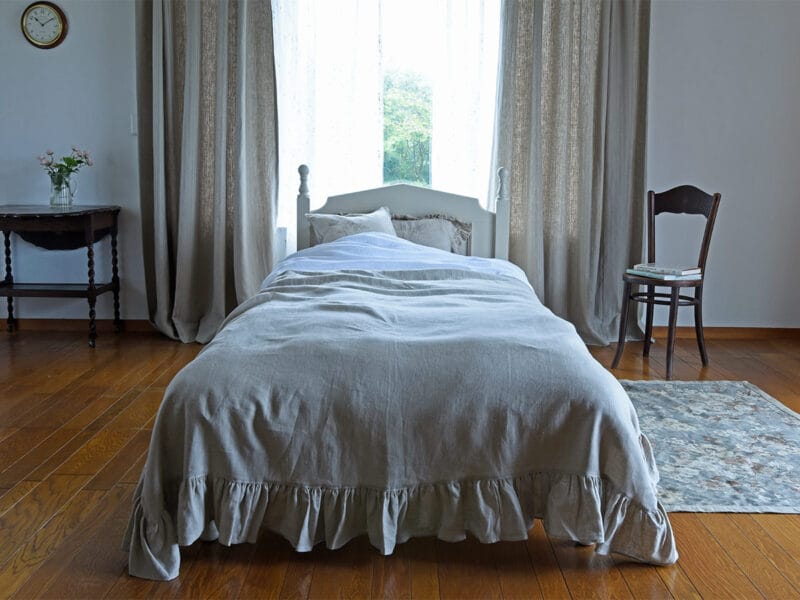 大人のエレガンスをフリル付きリネンベッドカバーで表現する