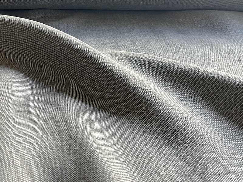 ナチュラルズ スモークは、硬めのリネン糸を平織りに織り上げた生地で、表面は平らで滑らかな触感を持っています。この生地のグレイの糸は単一色ではなく、薄いグレイと中間グレイが交互に染色されており、平織りにすることでシャンブレーな模様のような独特の色合いを生み出しています。名前の由来通り、煙が舞う瞬間のように2色のグレイが混ざり合ってモダンな印象を与えています。