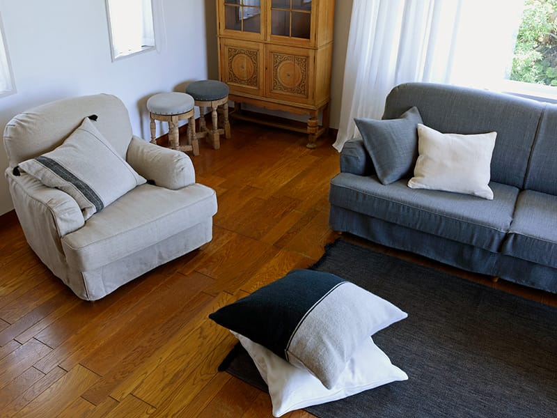 この生地は厚地リネンの中でもボリューム感のある生地で、さらりとした表面はソファに仕立てると心地よい肌触りを感じることが出来ます。冬はしっかりした質感が安心感を、夏はその柔らかな触感が快適さをもたらして1年中使いやすい生地となっています。
