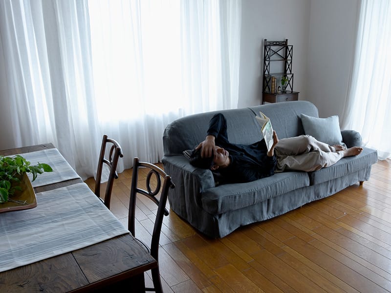 低めのアームは頭をのせるのに適した高さで、実際に試して頂ければかなり絶妙なサイズだとお分かり頂けます。アームの中央にくぼみがあり、そのくぼみがお昼寝タイムに最適でな理由のひとつです。さらに座面の奥行きが深いため、横になってゆとりを感じられるくつろぎ感を感じられます。