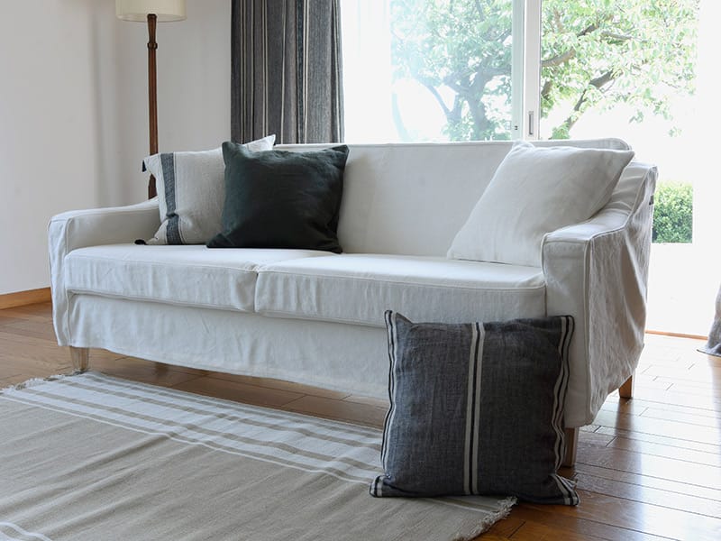 オフホワイトのコットンリネンで作るモダンなS3トリプルソファ